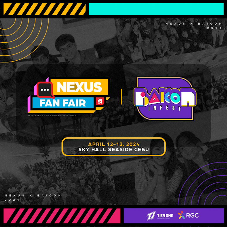 Prepare yourselves, gaming aficionados! Presented by Tier One Entertainment and organized by Republiq Group of Companies, Nexus Baicon will be the first-ever Nexus Fan Fair outside of Metro Manila. It is set to take place on April 12-13, 2024 at the Sky Hall Seaside in Cebu City.