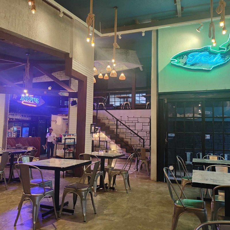 It is located conveniently at 19 Pres. Quirino St. This seafood haven offers a spacious dining area, plenty of parking, vibrant neon lights, and flavorful dishes that combine for an ambient restaurant atmosphere.