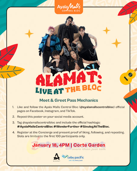 Experience a powerful and unforgettable Sinulog celebration at Ayala Malls Central Bloc as Alamat hits the stage on January 18, Saturday, at 4 PM at the Corte Garden. Get ready to feel the energy as the group performs their signature hits and dynamic performances that seamlessly blend modern sound with the rich cultural vibe we all love.