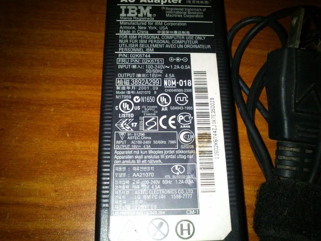 IBM LAPTOP AC Adapter input=100~240V and output=16V 4.5A = 1k