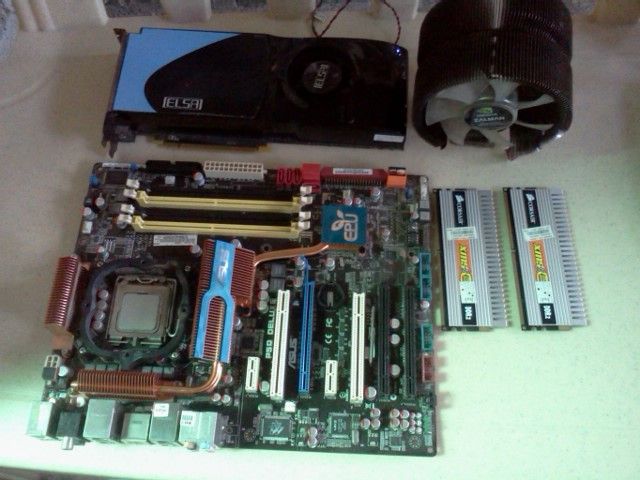Bundle only(no chop-chop) Asus P5Q Deluxe Mobo SLI ready,Intel C2Quad Proc 2.8GHz,2pcs.1g Corsair Xms2 ddr2 ram,Nvidia Geforce 9800GTX 512md Vc,plus free Zalman HSF Price:6,500 fix