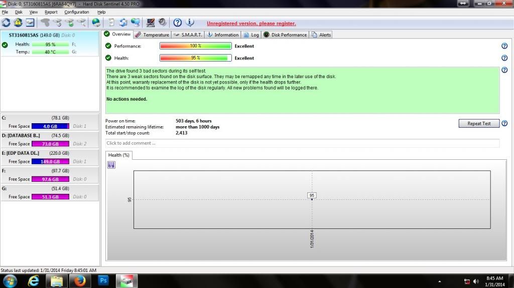 Ako 160GB na Seagate 0 days remaining, 0% health andar paman gani buwahaha. Pang scratch nalang sa Photoshop og Handbrake