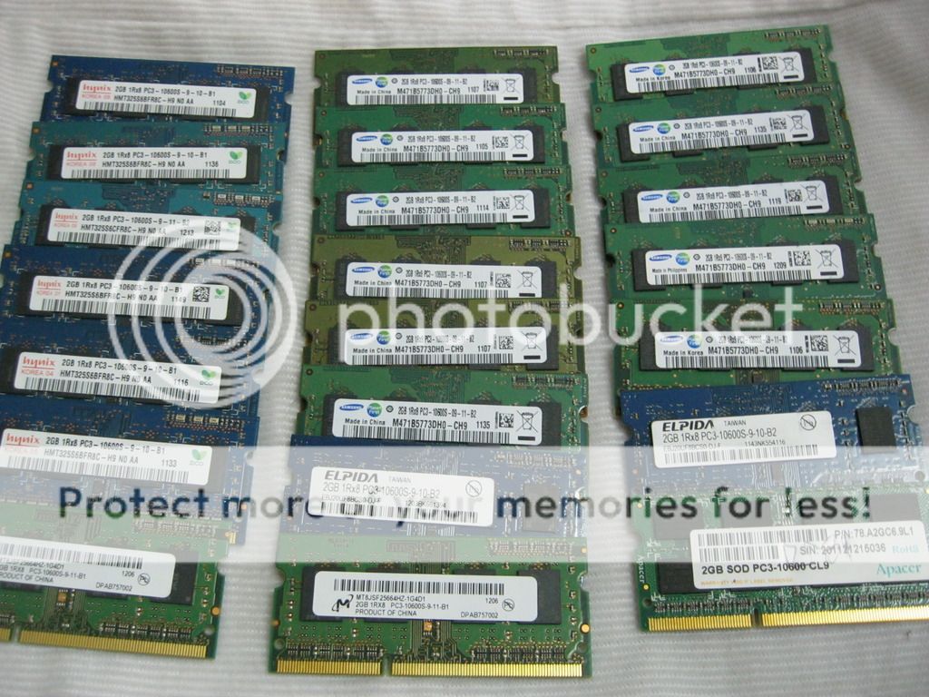 DDr3 Ram for laptops 2gb pc3 1rx8 pc3 8500s 8pcs available