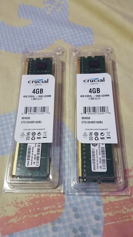 For sale my ram crucial 4gb dd3 1600mhz (2pcs) bought last feb 2016 for P900 each and negotiable