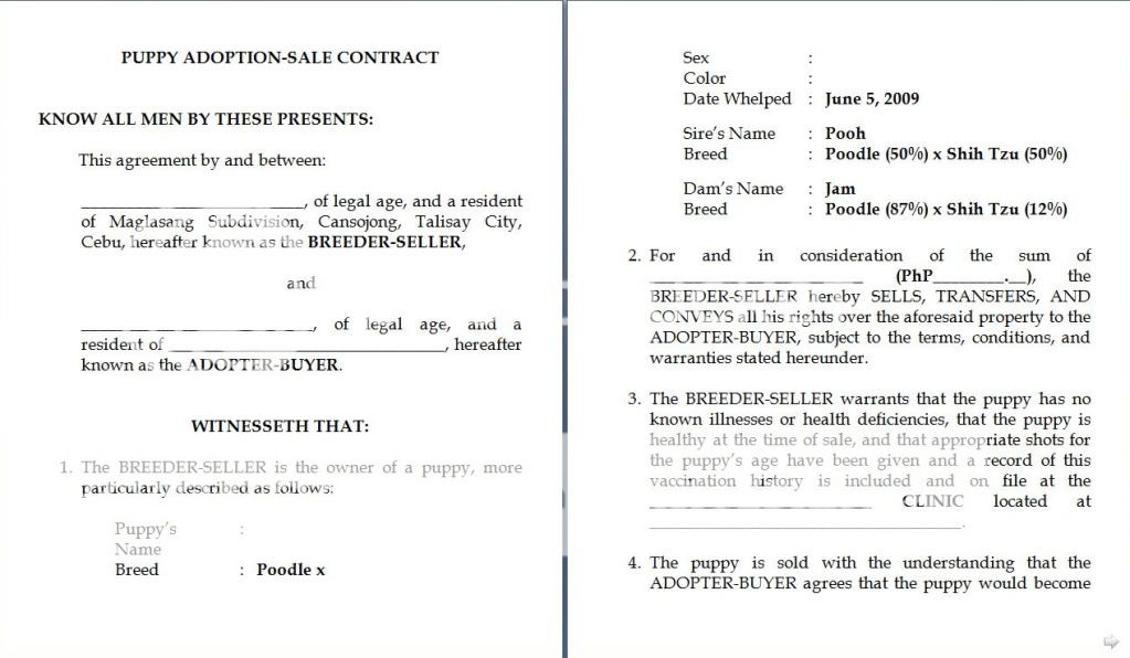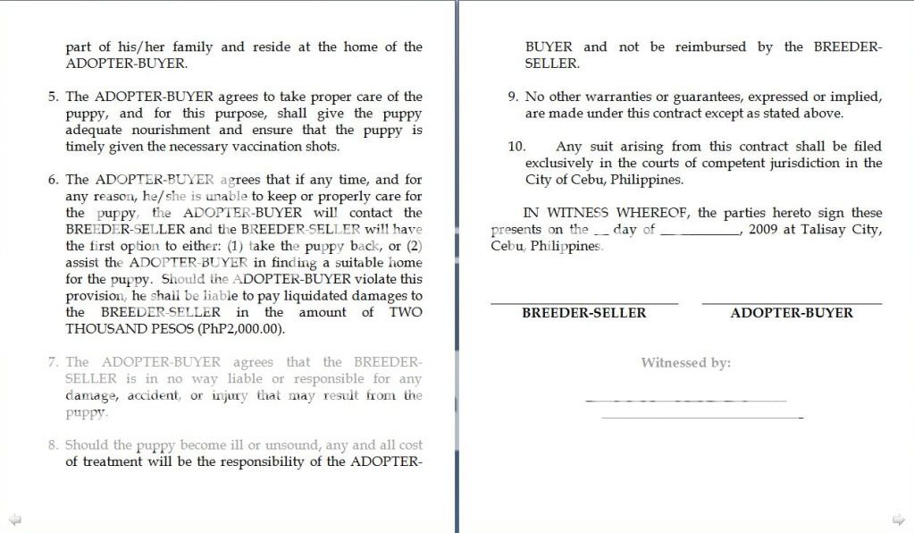 The contract is harmless if you will only do your part of taking good care of the puppy you will buy. It is as simple as that. The contract will bare its fangs only when you can no longer take care of the puppy/dog and you do not even bother to inform us so we can have him/her adopted by someone more responsible.