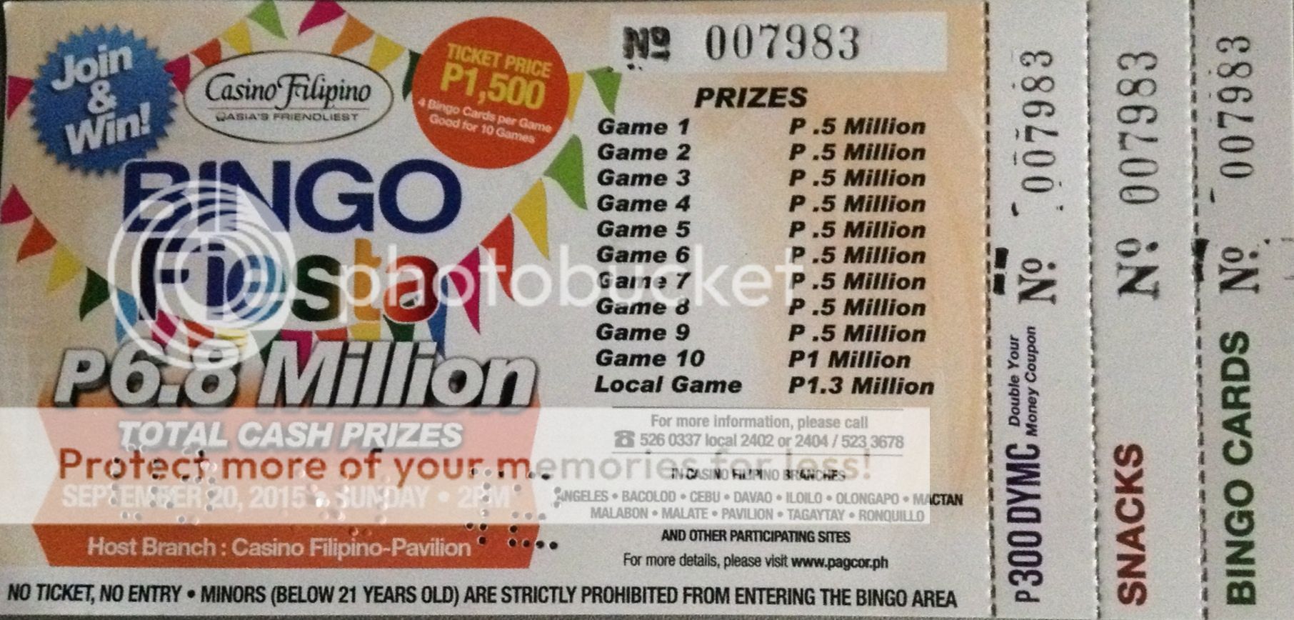 for sale : 1pc casino filipino pagcor bingo fiesta ticket (10 games)