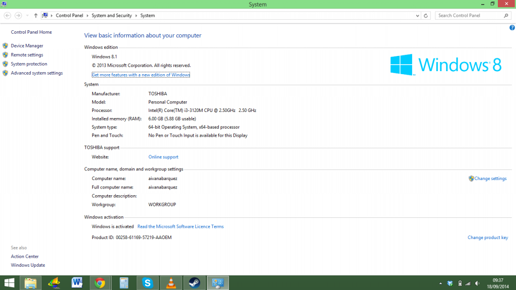 Toshiba Satellite Pro C50-A-1HP Laptop, Intel Core i3-3120M 2.5GHz, 6GB RAM, 500GB HDD, 15.6" TFT, DVDRW, Intel HD, Webcam, Bluetooth, Windows 8.1 64-bit
