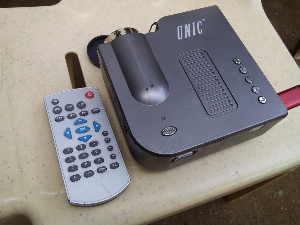 Inputs supported: VGA, USB, SD Card (untested), A/V via 3.5mm cable (untested and no cable)