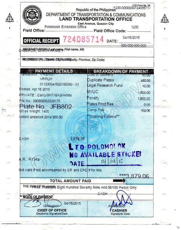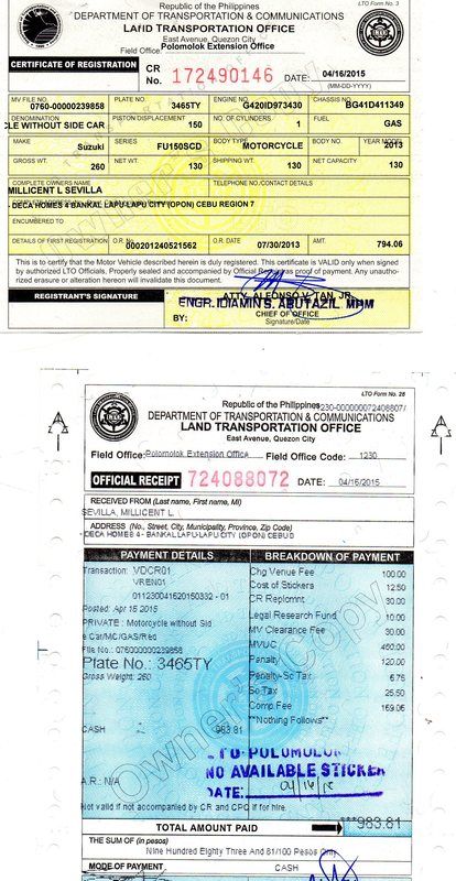 Bro yes nakuha na naku but dili ta mkakuha bsta dili irenew ang unit. Dpat ipa renew daan apil dayun apply ug new plate.