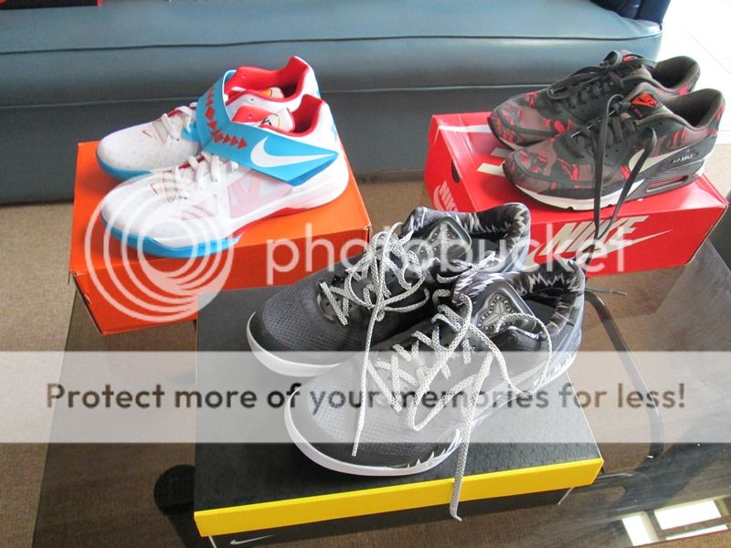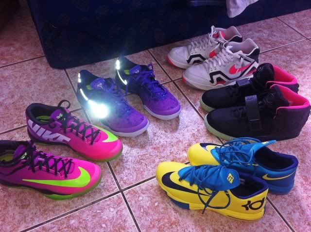 Been a while, Thanks to the commander abroad... Kobe 8 Mambacurial, Kobe 8 Purple Fades, Air challenge tech 2 retro, Yeezy 2 Black & Solar Red and KD VI Seat Pleasant...