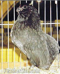 Barbu d'Anvers that was develped around 1904. They have the same pert body carriage as the d'Anvers, with the wings carried toward the ground. They also have a short and thick neck and a beard.