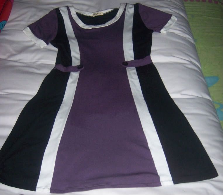 Tri-color (Purple, Black, White) Short-sleeves Cotton Dress