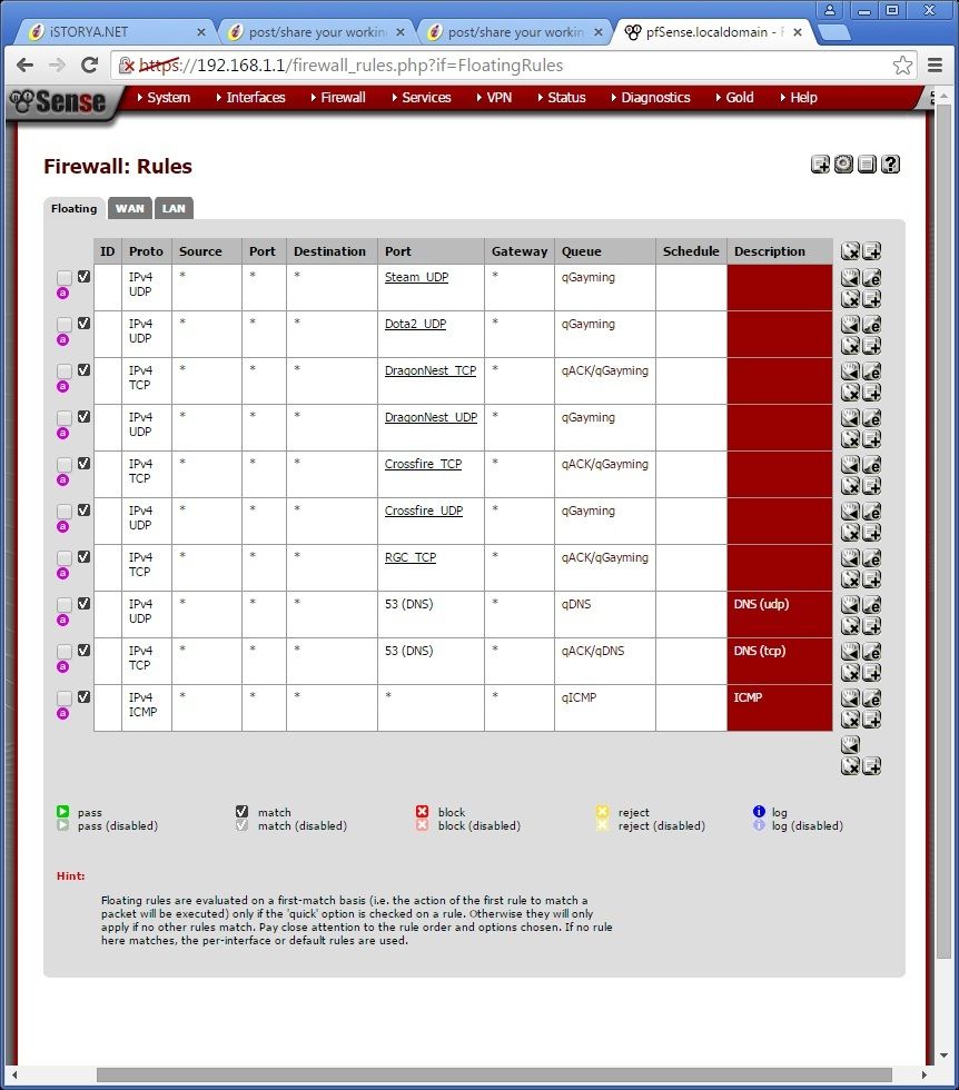 first is system info, 2nd is the floating rules, 3rd is the port alias/range
