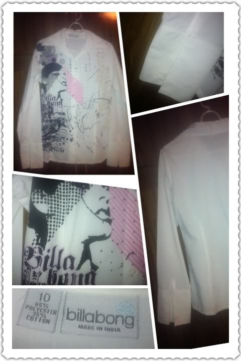 Authentic Billabong top. Used once only and is in a perfect condition. White in color and in size 10 or about a medium here. Bought from Australia for about $39 or 1,600php. This will be yours for only 300php. This says: Office girl/formal but with a personality.