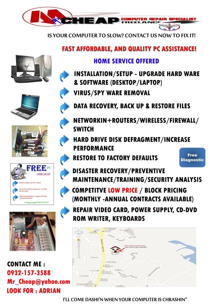 Get your computer fixed quickly and locally by Mr Cheap Home Computer Repair.